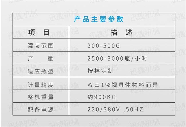 3、灌裝機采用橫推料的方式,大大縮短了下料斗到灌裝頭的距離,提高了灌裝速度,更重要的是解決了含油量大的物料在灌裝過程中出現的有些瓶油多,有些瓶醬多的灌裝難題,大大提高了灌裝精度。