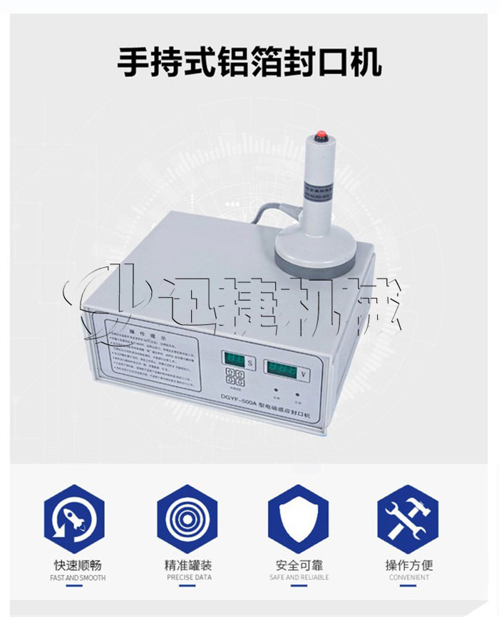 該該封口機(jī)為手持式鋁箔封口機(jī),是一種便攜式電磁感應(yīng)加熱封口設(shè)備,專為制藥、化工、農(nóng)藥、食品、化妝品、輕工行業(yè)對容器進(jìn)行鋁箔嚴(yán)密封口,封口材質(zhì)使用廣泛。