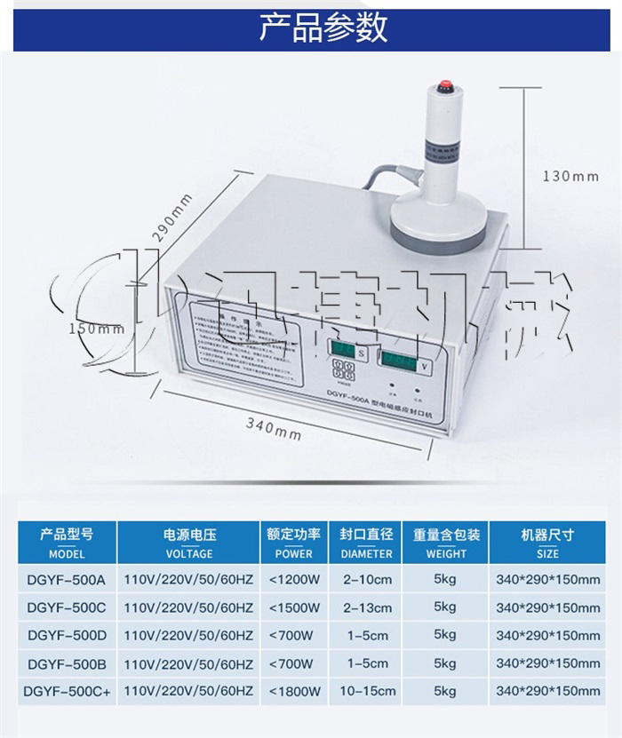 本手持式電磁感應(yīng)鋁箔封口機(jī)是利用電磁感應(yīng)的原理,將瓶口上的鋁箔片瞬間產(chǎn)生高熱,然后熔合在瓶口上,使達(dá)到封口的功能。具有良好的防潮、防霉、防偽作用,起到延長物品保存周期的目的。封口容器的材質(zhì)可以是聚乙(PE)、聚丙烯(PP)、聚酯(PET)、聚苯乙烯(PS)、ABS以及玻璃等,不能用于金屬瓶體及瓶蓋。(本公司同時(shí)提供各種材料感應(yīng)鋁箔膜)。
