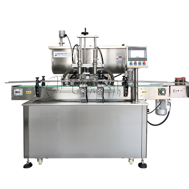 3、 該設備在設計上大大縮短了下料斗到灌裝頭的灌裝距離,克服了含油量大的物料(如:含芝麻粒的辣椒油)在灌裝過程中出現(xiàn)的有些瓶油多,有些瓶醬多的灌裝誤差大的缺點。